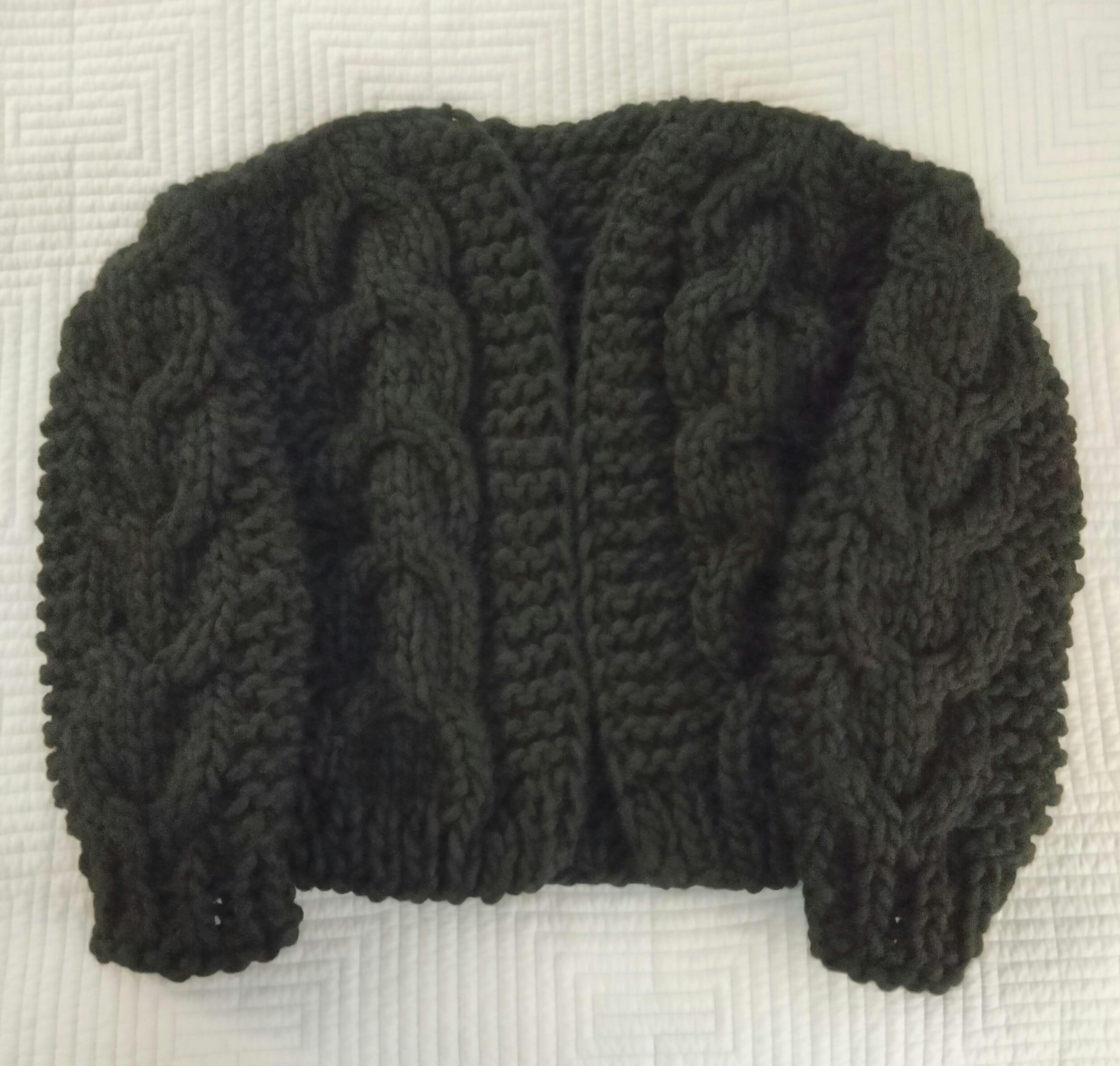Finally, the pieces are sewn together—no tapestry needle needed, you can use your fingers!—to complete the cardigan.